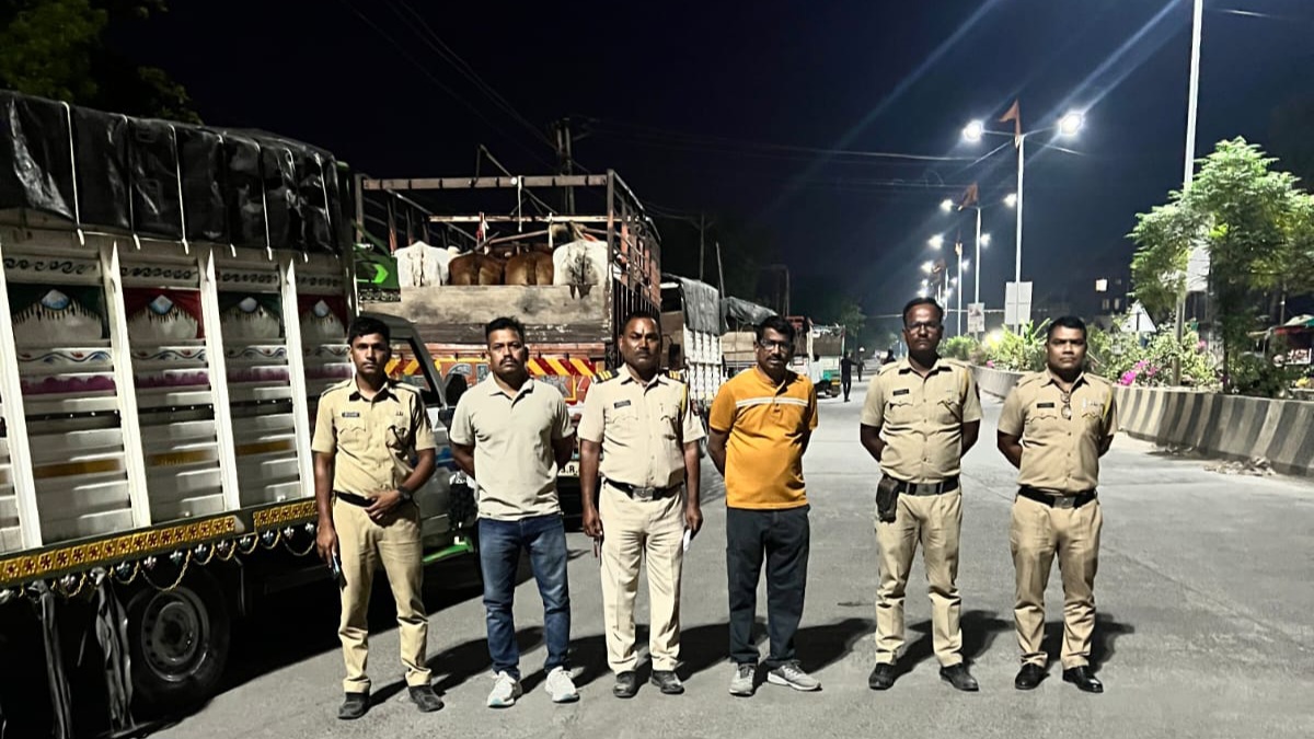 या कारवाईमध्ये एकूण ११ आरोपी असून ४५ बैल जातीची गोवंश जनावरे जप्त करण्यात आली आहेत.पारडगाव तालुका परतूर या ठिकाणाहून ही जनावरे वाहनांमध्ये निर्दयतेने कोंबून, त्यांना यातना होईल अशा पद्धतीने मोटर वाहन कायद्याचे उल्लंघन करून नेली जात होती. रायगड कॉर्नर येथे ही वाहने पकडल्यानंतर पोलिसांनी ५५ लाख रुपये किमतीचा मुद्देमाल जप्त केला. यात वाहने आणि जनावरांचा समावेश आहे. जप्त केलेली सर्व जनावरे इटोली ता. जिंतूर येथील गोशाळेत सुरक्षित पाठवण्यात आली आहेत. अशी माहिती पोलिस निरीक्षक दीपक बोरसे यांनी दिली. सदरची कार्यवाही पोलीस अधीक्षक दीपककुमार वाघमारे यांच्या मार्गदर्शनाखाली पोलीस उपनिरीक्षक राऊत, पोलीस हवालदार जाधव, तेलंगे, कोपनर, रासकटला आणि साठे यांनी केली आहे. या गुन्ह्याचा पुढील तपास पोलीस हवालदार तेलंगे, शेख आणि राठोड हे करीत आहेत.